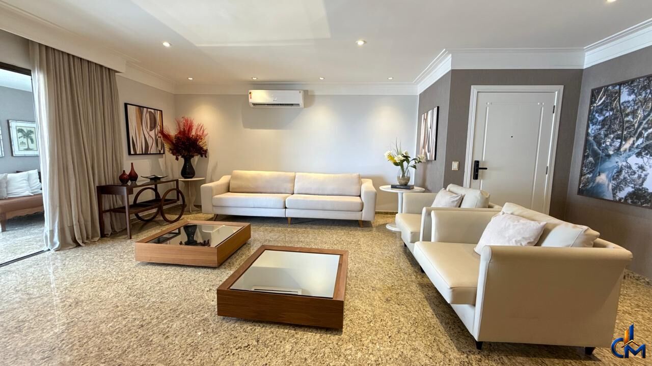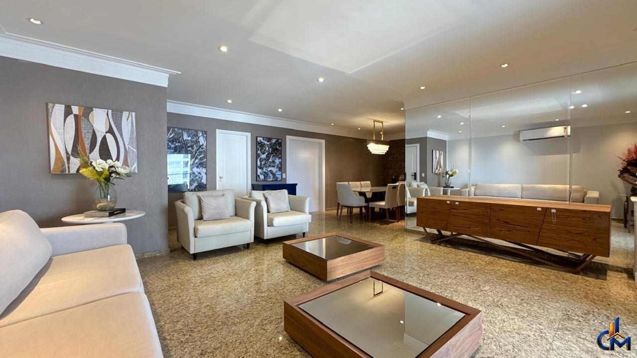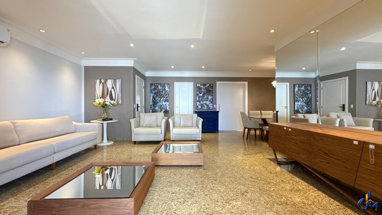 Com 240m² de área privativa, o imóvel mobiliado e finamente decorado, pronto para morar. Os ambientes seguem um estilo clássico e elegante, com móveis planejados muito bem trabalhados, paredes revestidas em papel de parede e lustres que valorizam ainda mais cada espaço, trazendo sofisticação e aconchego.