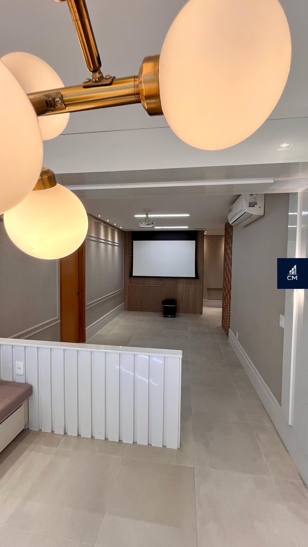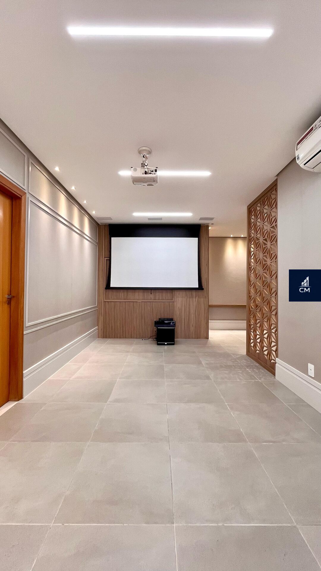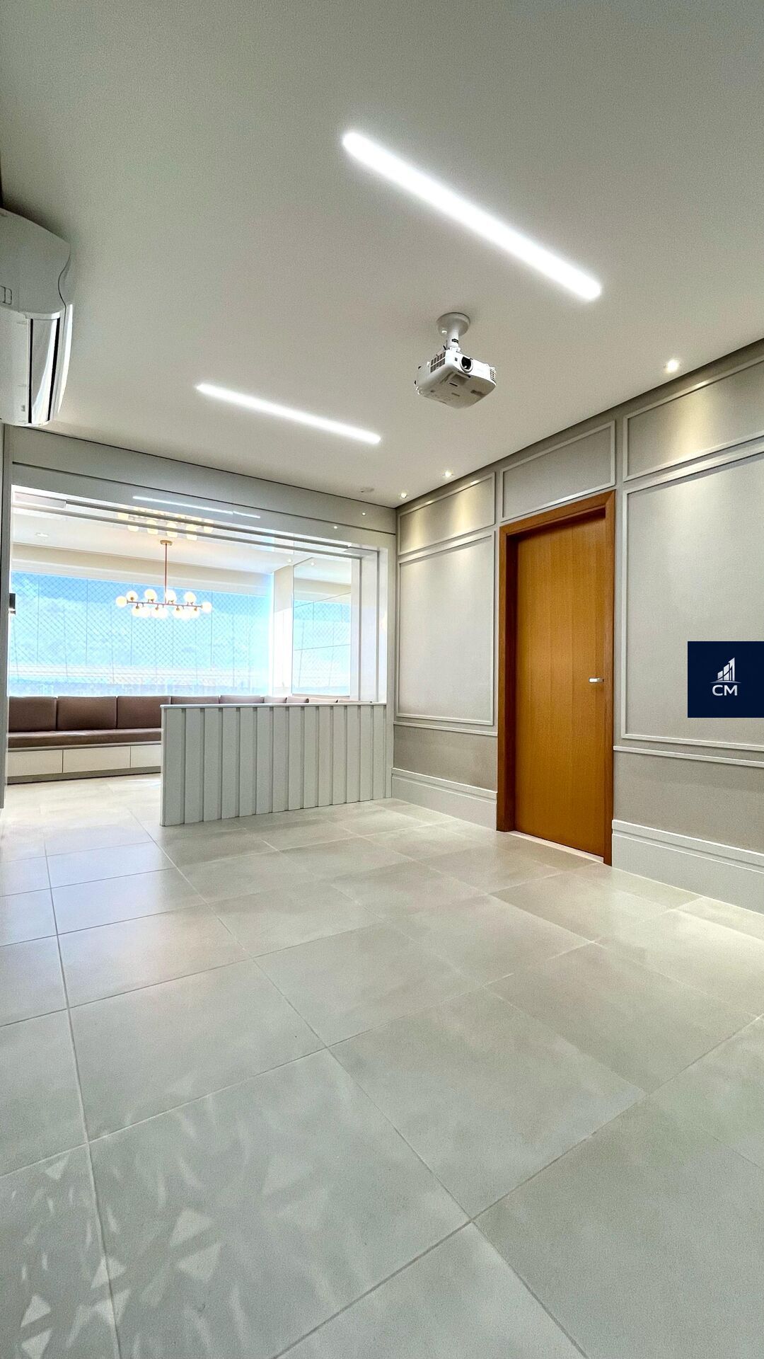 - Sala de estar integrada à sacada gourmet, equipada com telão automático e projetor.